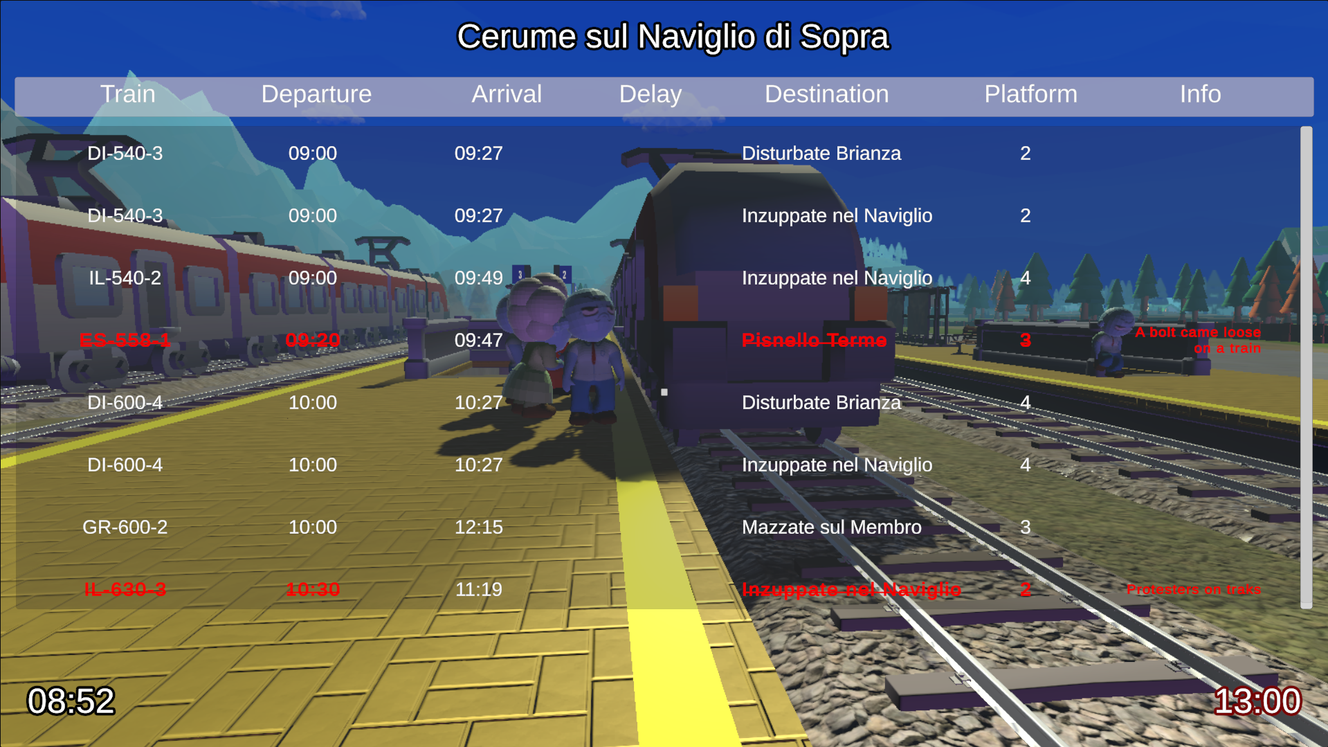 Your objective is simple: travel every day from your lovely (and fictional) town of "Cerume sul naviglio di sopra" to your office in Milan. Fortunately, the station is near home, but you'll soon discover that the entire Universe (and the railway system) is against you.